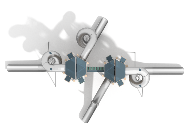 Toboggan tunnel en inox AISI 303 d'épaisseur 2mm, finition des extremites en tubes de 33,7 mm, surface polie.
