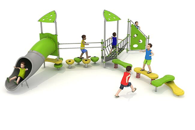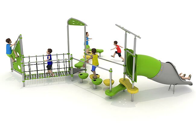 Structure d'équilibreStructure de grimpemarche d'accèsMur d'escaladePas de géantsPont filetToboggan tunnel