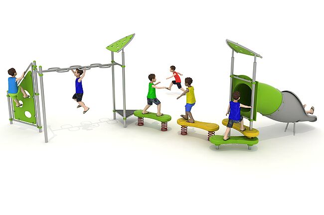 Structure d'équilibreStructure de grimpeEchelle horizontalemarche d'accèsMur d'escaladeToboggan tunnel