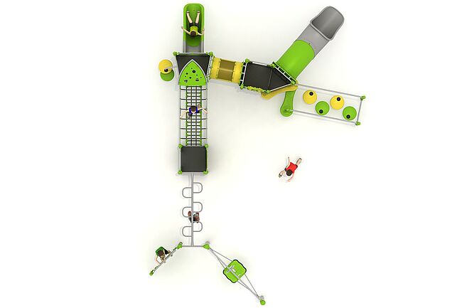 BalançoireDisques à grimperEchelle horizontalemarche d'accèsMur d'escaladePas de géantsPont filetTunnelToboggan tunnel