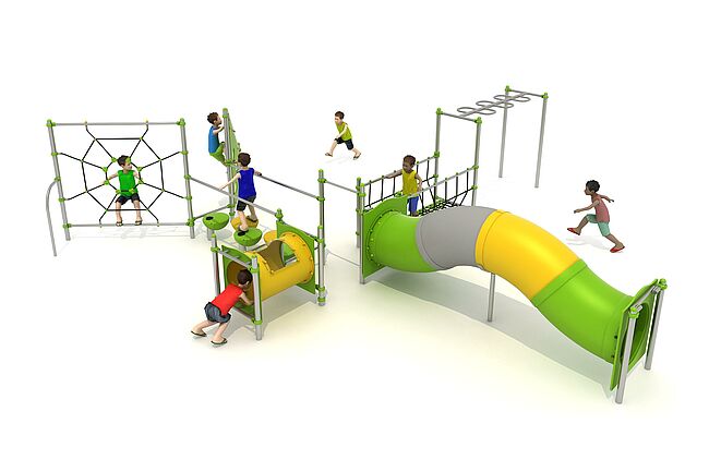 Structure d'équilibreStructure de grimpeEchelle horizontaleFilet araignéeMur d'escaladePont filetPas de géantsTunnel