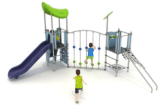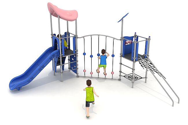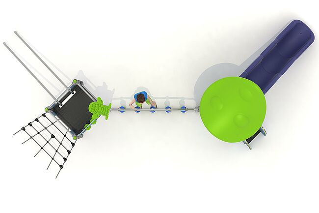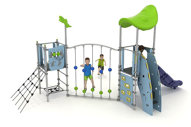 Barre de glisseEchelle d'accèsEscalierFilet InclinéHamacFilet de grimpeMur d'escaladePanneaux ludiquesToboggan