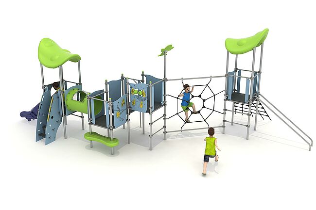 Barre de glisseEchelle d'accèsEscalierFilet araignéeFilet Inclinémarche d'accèsPanneaux ludiquesTunnelToboggan