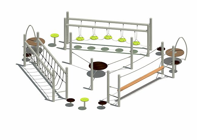 Structure d'équilibrePlateforme départPoutre d'équilibrePas de géantsPont filetPont souplePassage de rivière
