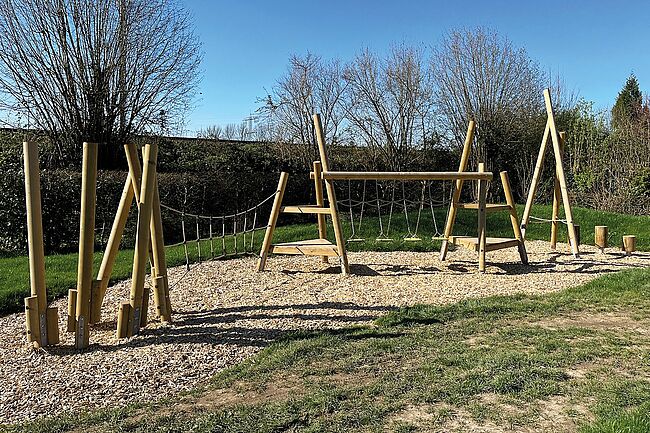Structure d'équilibreStructure de motricitéFilet de grimpePas de géantsPont souplePoutre d'équilibre