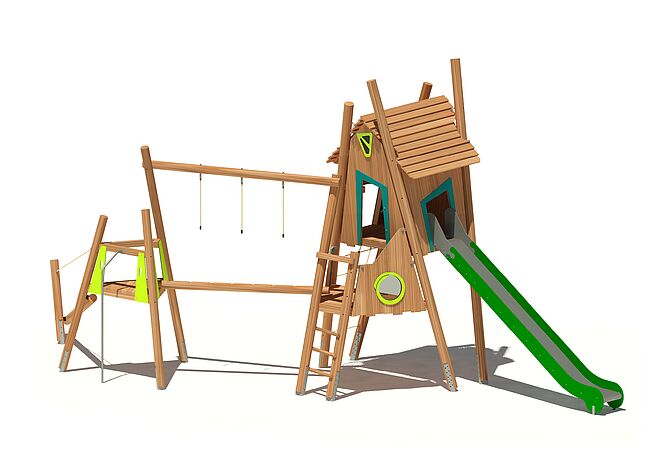 Barre de pompierEchelle d'accèsFilet de grimpePoignées de suspentePassage de rivièrePoutre d'équilibreToboggan